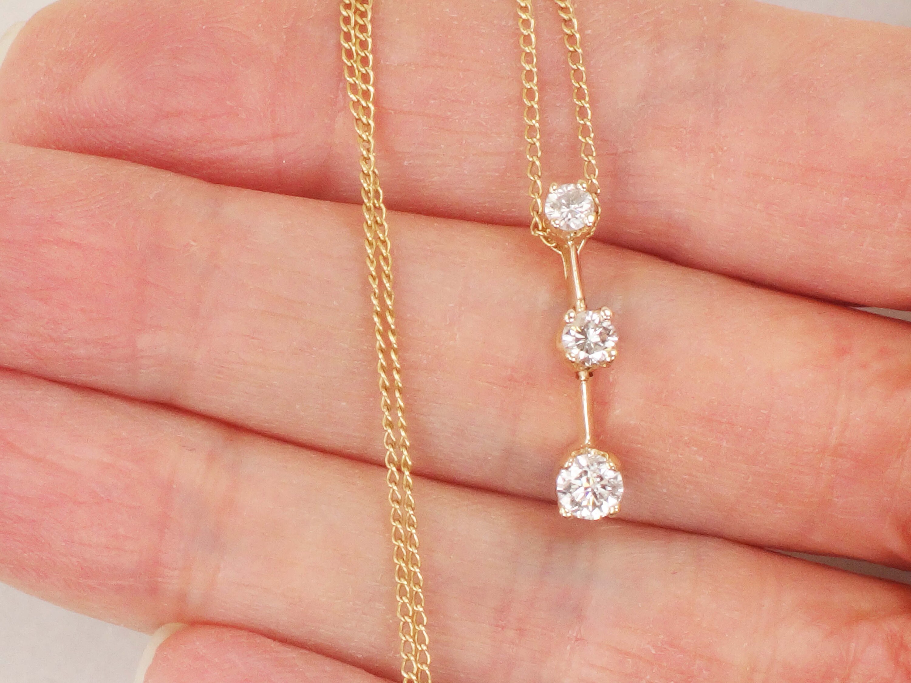 Vintage Yellow Gold Three Diamond Necklace 14k Diamond Drop Etsy