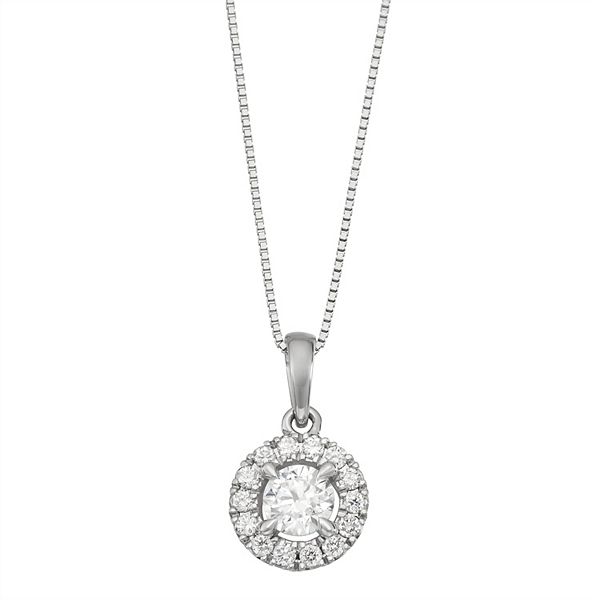 Evolv 14k White Gold 1 2 Carat T W Igi Certified Lab Grown Diamond Halo Pendant Necklace