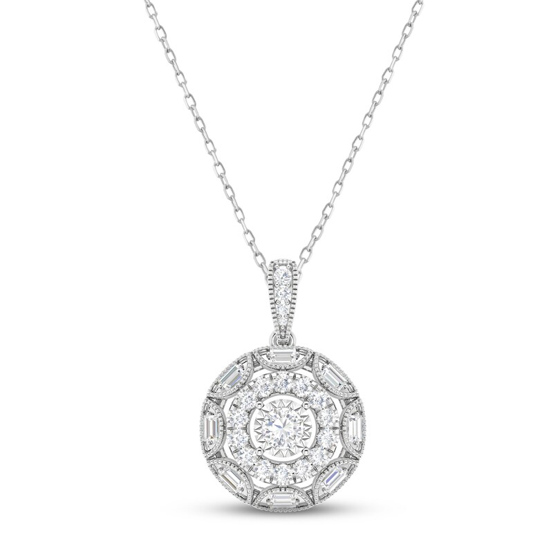 Diamond Necklace 1 2 Ct Tw Round Baguette Cut 10k White Gold 18 Kay